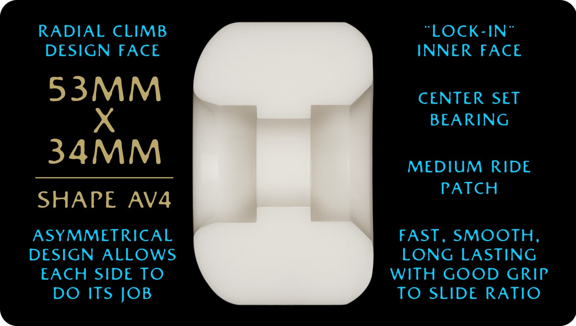 Powell Peralta Nano Rats 97A - AV4 Asymmetrical Shape - Medium Ride Patch - 53mm x 34mm 97A AV4 Skateboard Wheels 4pk